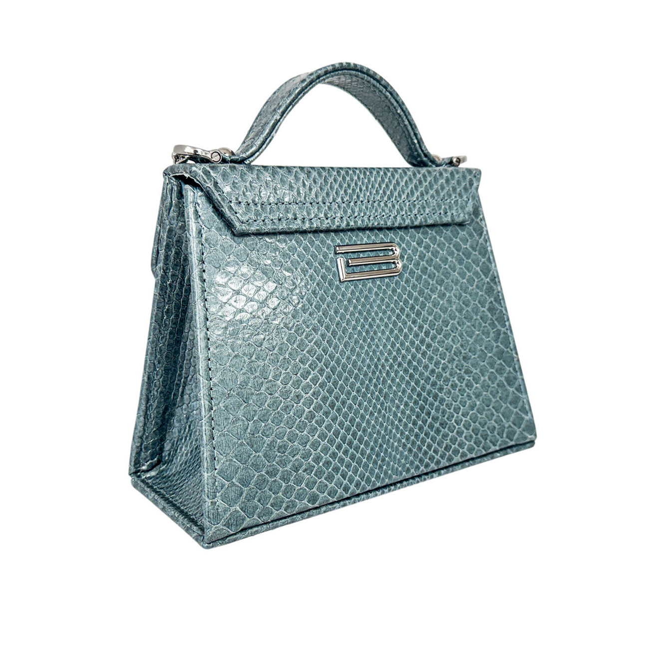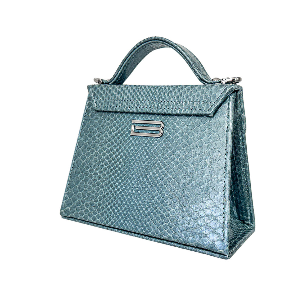 The BSWANKY Casey Très Petite Serpentine in Ocean Blue Python is a rare and luminous creation, handcrafted from pearlescent ocean blue python, expertly tanned in Italy to reveal a soft, iridescent sheen that shifts beautifully with the light. Sculptural and refined, the silhouette embodies understated elegance with unmistakable presence.