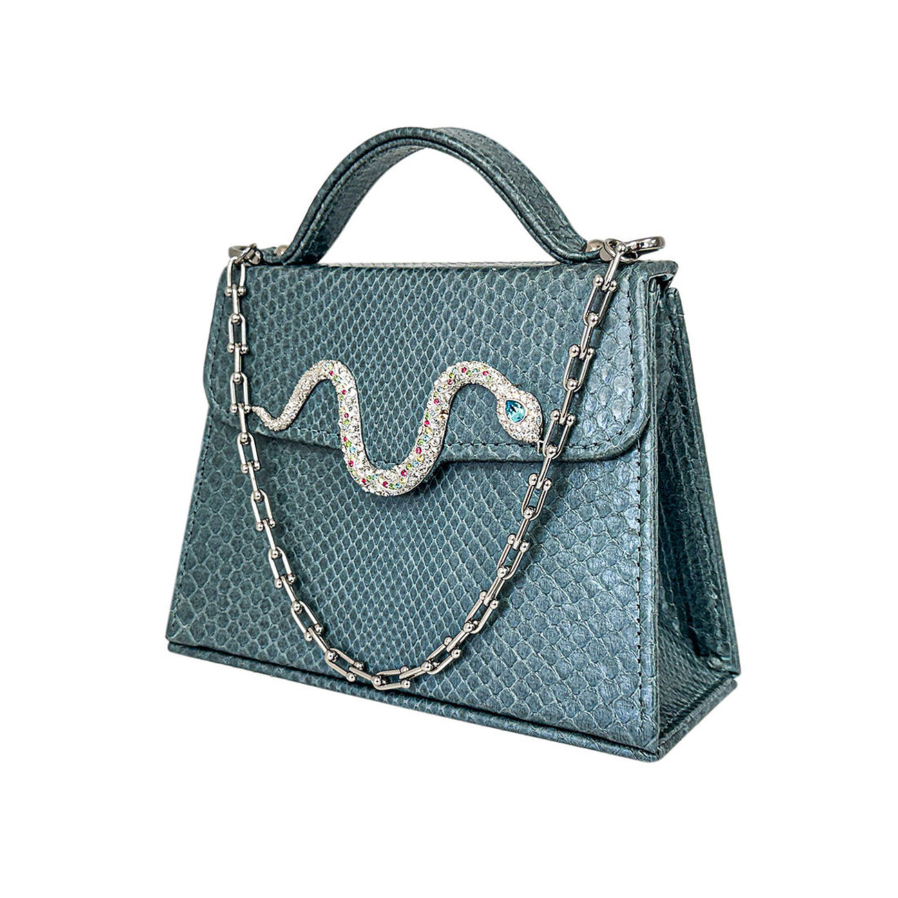 Shop » Casey » Casey Très Petite Serpentine in Ocean Blue Python