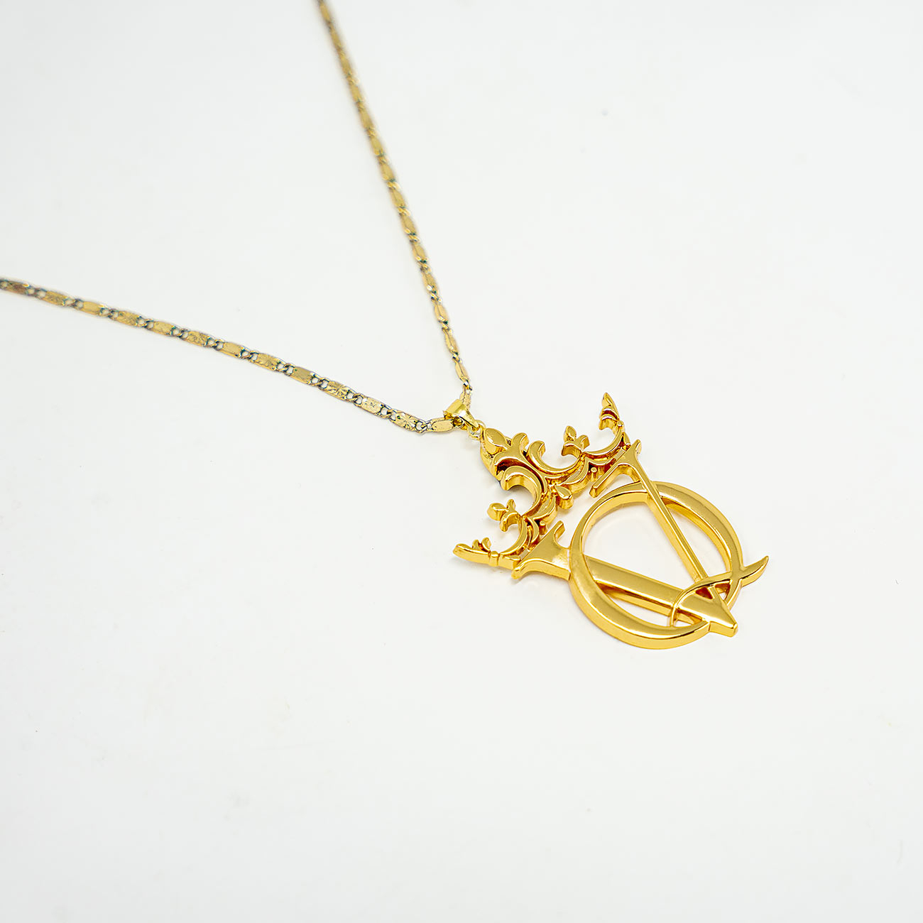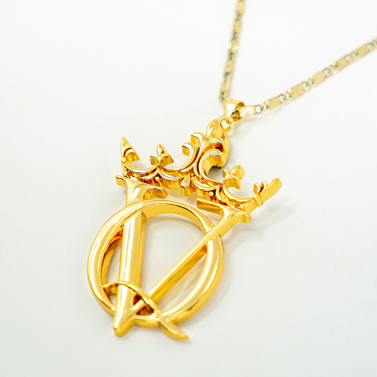 24kt gold plate Motif size: 55mm x 33mm 18” Length 24kt gold plated chain Complete with velvet gift box fit for a queen