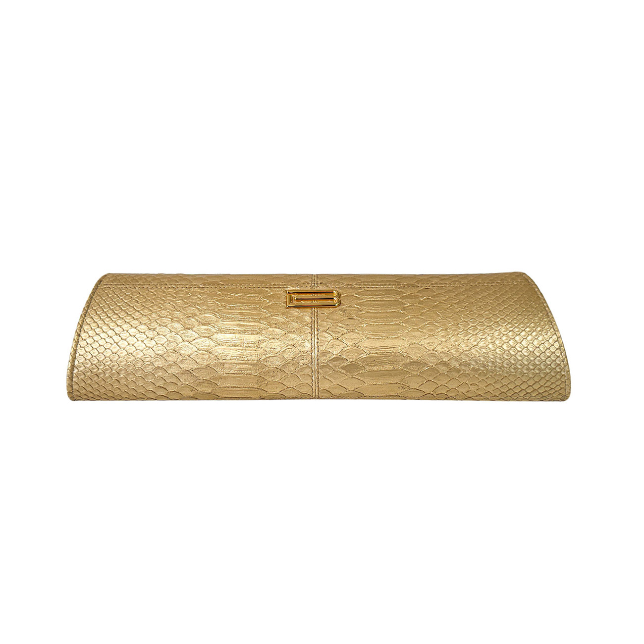 The BSWANKY Wisteria Clutch stands as a masterstroke of exotic luxury, meticulously handcrafted in Italy from gold patina python whose radiant surface captures the light with dressage-level precision. Each scale is intentionally selected for its harmony and sheen, resulting in a silhouette that channels the grace of a cantering horse while maintaining a sculptural, modern elegance. This clutch honors the noble lineage of equestrian artistry, where couture meets the heritage of the bridle path.